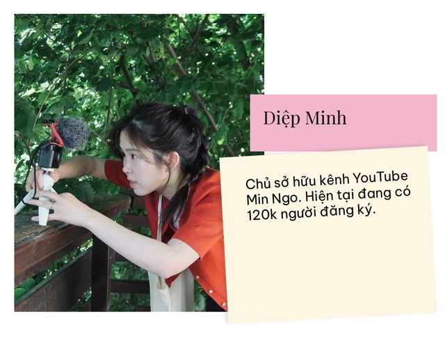 Diệp Minh (Min Ngo) - YouTuber sinh năm 1993 hiện đang sinh sống và làm việc tại Pháp. Kênh YouTube của cô nàng hiện đang sở hữu 120 nghìn người theo dõi và từng được nhiều người biết đến khi đảm nhận vai trò giám đốc nghệ thuật trong mảng truyền thống số.