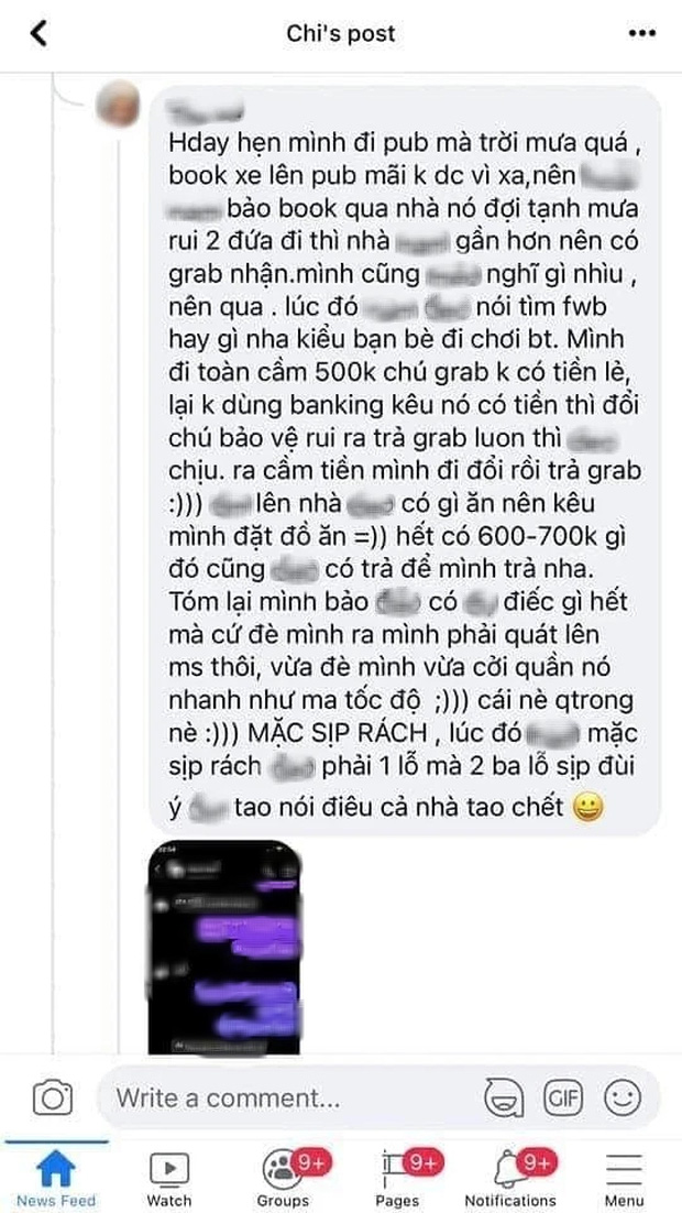 Cô gái cũng tung ra loạt tin nhắn cũ làm bằng chứng. Theo lời kể của cô nàng thì H.N đã rủ cô đi pub, tuy nhiên do trời mưa không gọi được xe nên H.N đã rủ cô đến nhà mình chờ mưa tạnh. Khi đến nơi, H.N đã có hành vi ép cô nàng quan hệ tình dục. Tuy nhiên, cô nàng nhất quyết từ chối. Đáng chú ý nhất chính là việc cô gái còn "bóc phốt" rằng H.N mặc "sịp rách"!