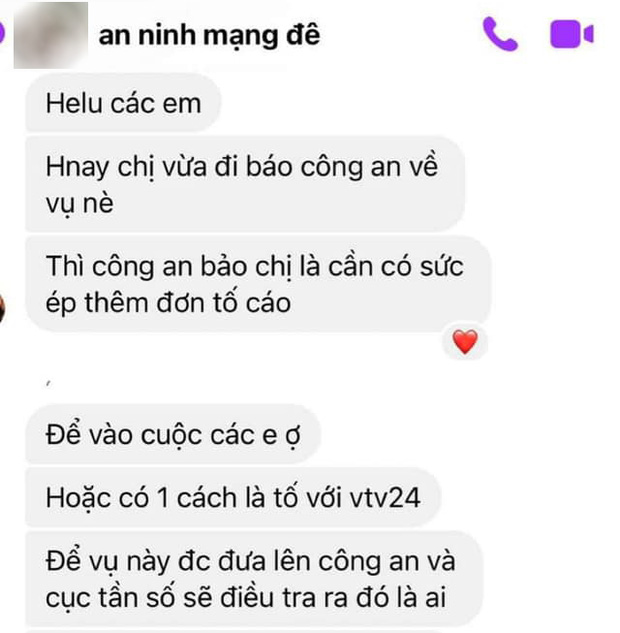 M.N và các nạn nhân sau đó đã tổng hợp lại các tin nhắn quấy rối cũng như bằng chứng thu được và báo công an với hy vọng sớm tìm ra hung thủ.