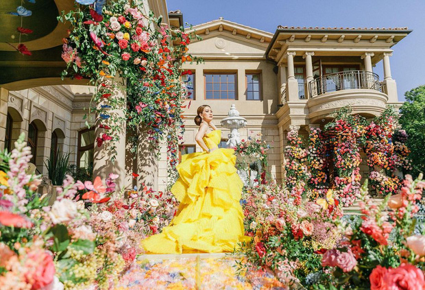 Bình thường đã cực kì nguy nga với phong cách cổ điển và tone vàng đồng sang trọng, căn nhà của Mimi Morris còn thường xuyên được phủ kín bằng hoa tươi, trông y hệt như một khu vườn khổng lồ.