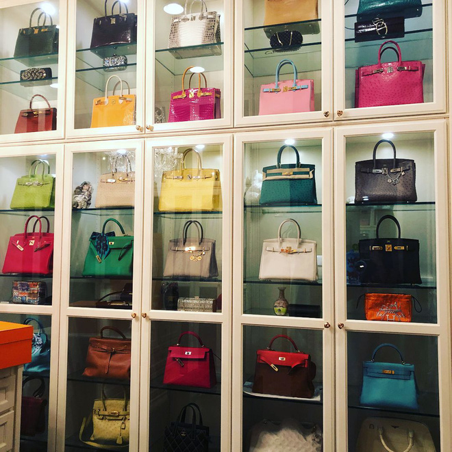 Hoành tráng không kém BST siêu xe của Mimi chính là kho hàng hiệu khổng lồ với số lượng túi Hermes và giày cao gót đếm không xuể.