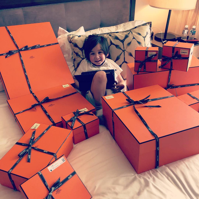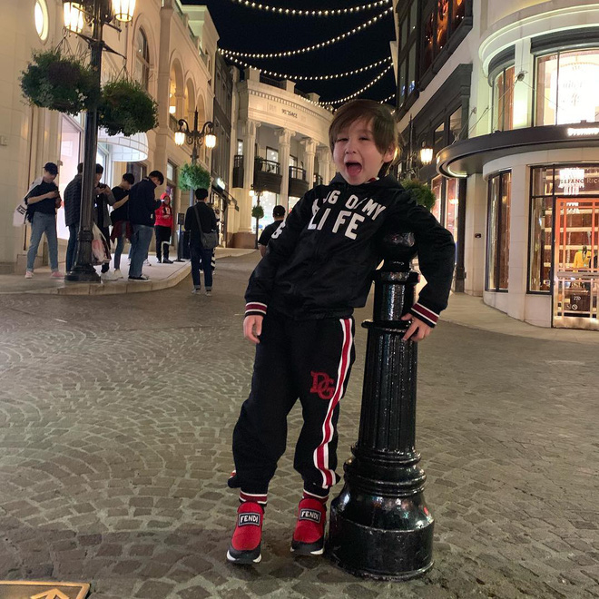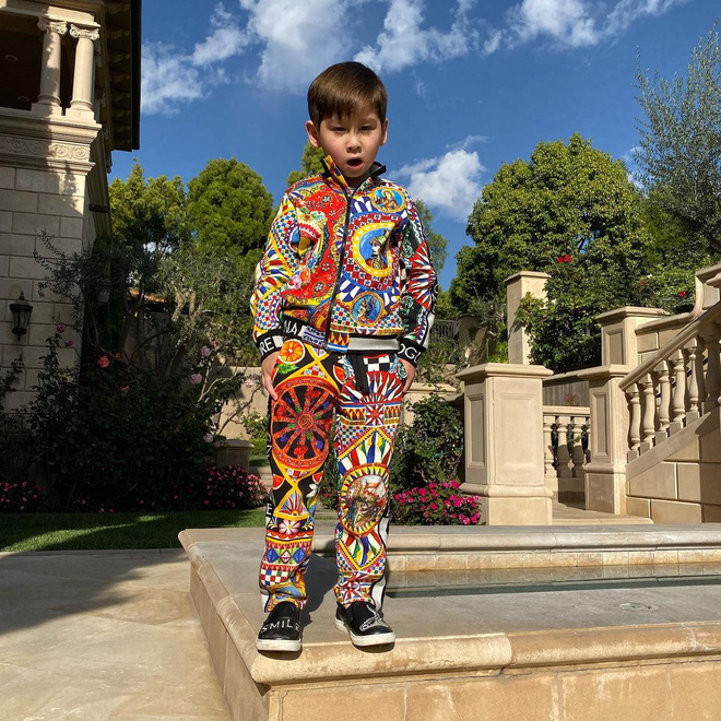 Đương nhiên thiếu gia út nhà Morris được mẹ "phủ" hàng hiệu từ đầu đến chân. Những thương hiệu mà rich kid này hay sử dụng gồm có Fendi, Versace, D&G,...