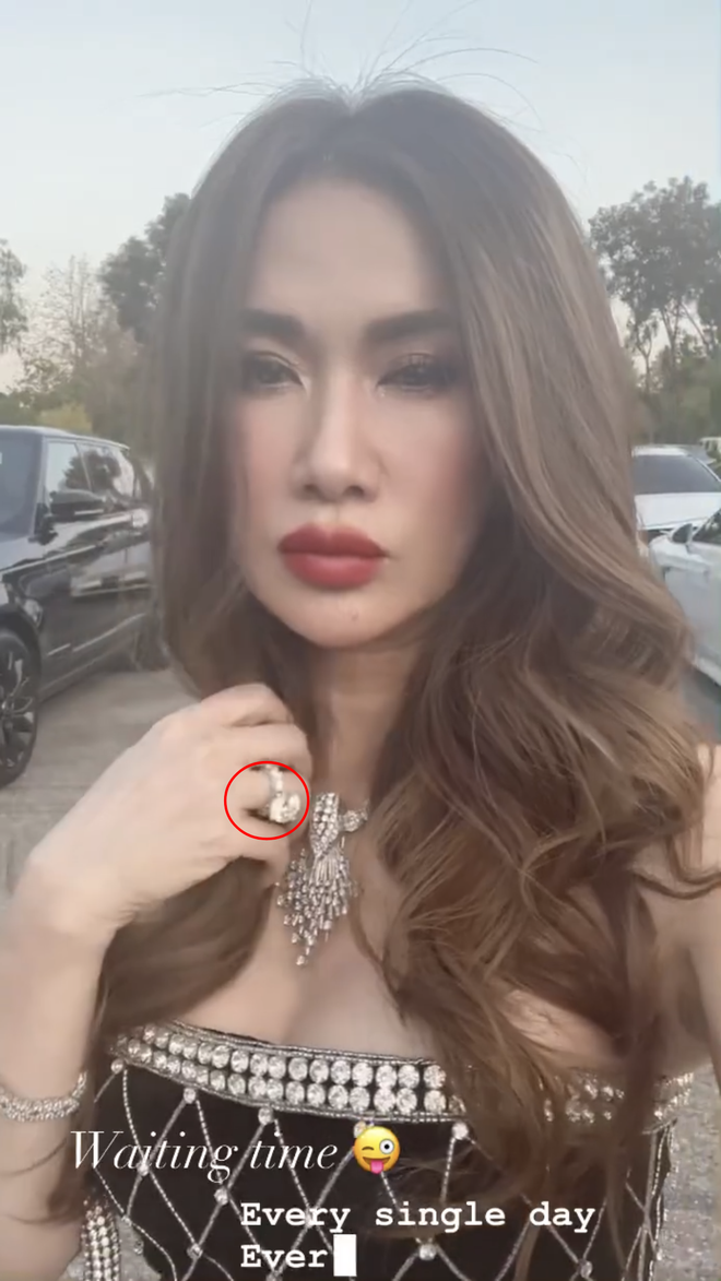 Trong story Mimi Morris đang đứng đợi ai đó nên tranh thủ quay clip cập nhật cho dân mạng. Đáng chú ý, trong đoạn clip có sự xuất hiện của chiếc nhẫn kim cương to đùng vật vã, khiến netizen khó lòng rời mắt. Với độ lớn như thế này, nếu so hột xoàn của Mimi với hột nhãn, hột mít cũng chẳng có gì lạ.