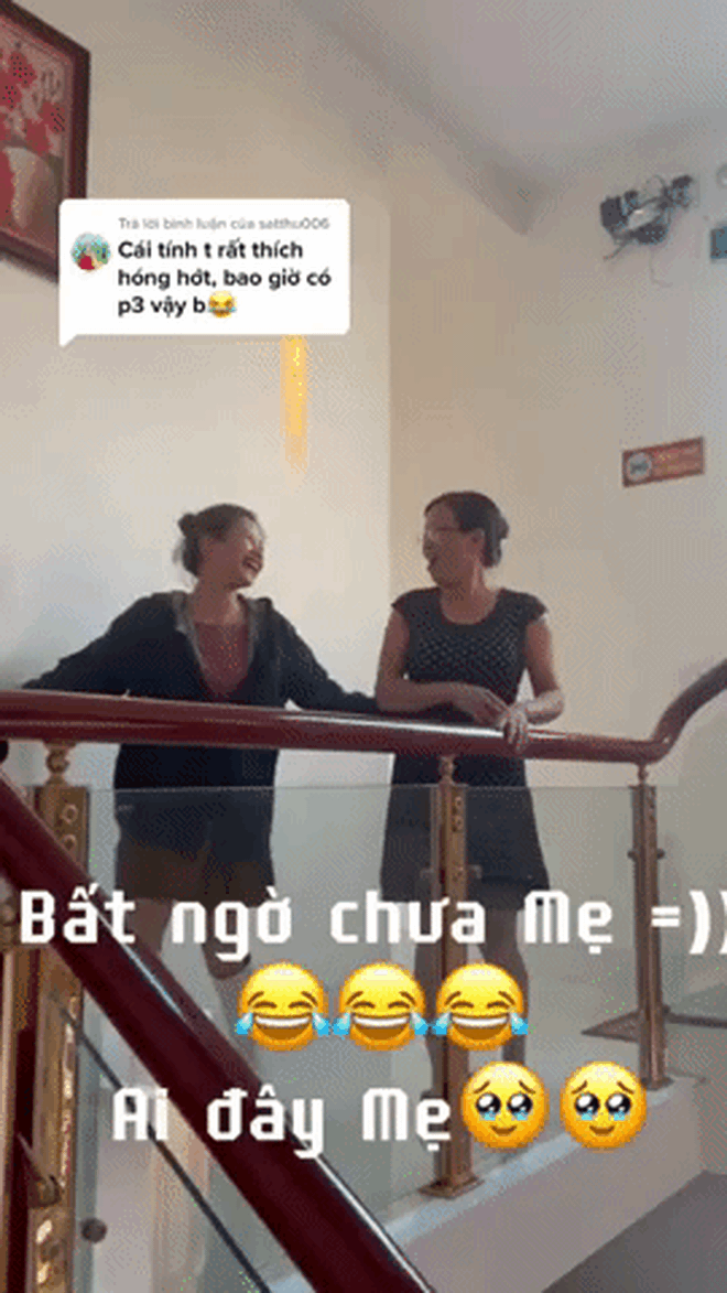 Đi tới đi lui cạnh mẹ một hồi, cô gái liền quyết định tháo khẩu trang và mũ của mình ra. Khi thấy cô con gái đã xa cách mình 3 năm sau thời gian dài đi du học, người mẹ đã không nén nổi sự xúc động mà chực trào nước mắt tại chỗ. Hai mẹ con dành cho nhau những cái ôm tình cảm mà đã lâu rồi họ chưa có.