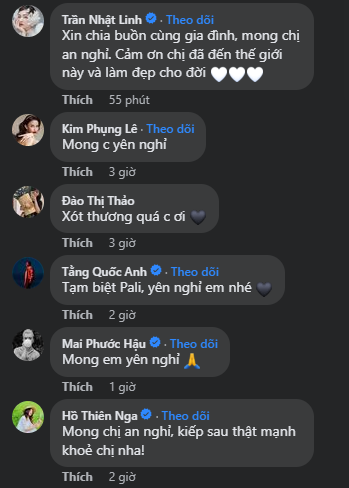 Bạn thân của Pali, Hiền Vũ (Founder một thương hiệu váy cưới, Hà Nội) liên tục gửi lời chia buồn đến nữ Founder quá cố và gọi cô là "bạn thân nhất". Nam rapper Mr.T cũng chia sẻ sự bất ngờ khi trước đó vài ngày, anh và Pali vẫn còn trò chuyện cùng nhau. Hoa hậu sắc đẹp 2021 - Nguyễn Đặng Tường Linh cũng vô cùng sốc trước sự ra đi đột ngột của người chị: "Mới hôm nào em còn gặp chị, hôm nay nghe tin sao sốc quá, mong chị yên nghỉ và hạnh phúc ở bên kia nhé".