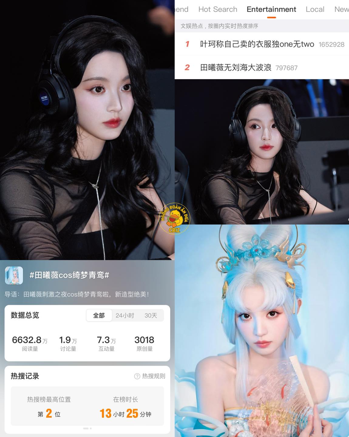 Với khoảnh khắc ngồi trên bàn đấu, Điền Hi Vi nhập vai một nữ game thủ cực ngầu. Cô nàng vén mái để lộ vầng trán cao, thay cho kiểu tóc mái thưa/ mái bằng thường thấy ngày trước. Gương mặt đẹp hút hồn của Điền Hi Vi vì theo đuổi concept này mà cũng thiếu vắng nụ cười tươi rói, tràn đầy tích cực. Tuy vậy, với việc liên tiếp cho khán giả nhìn thấy sự mới mẻ và linh hoạt trong phong cách, chính là điều giúp hình ảnh mới của Điền Hi Vi nhanh chóng được quan tâm, chia sẻ rầm rộ.