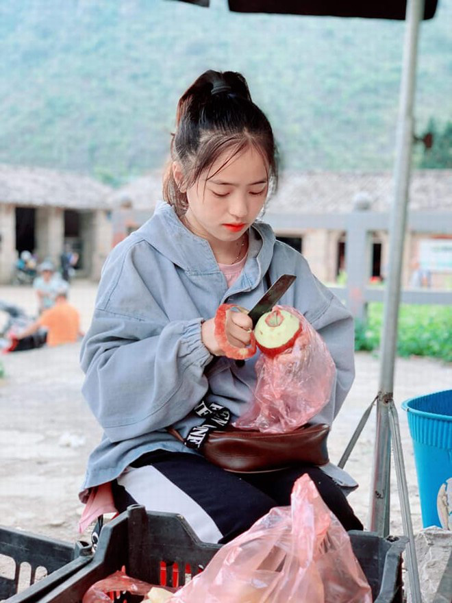 Vào thời điểm năm 2018, "cô bé bán lê" đang bán hàng phụ mẹ trong bộ quần áo đồng phục ở Hà Giang được chia sẻ khắp diễn đàn mạng xã hội với vô số lời khen cho vẻ đẹp trong trẻo và đáng yêu.