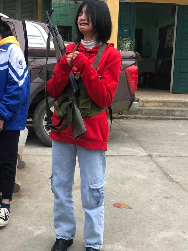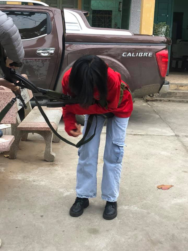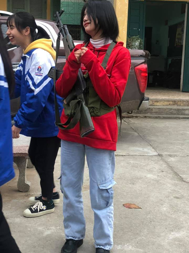 Những tấm hình chụp lén của cô bạn này nhận về rất nhiều lượt yêu thích. Dù là ở cấp 3 nhưng các học sinh khi học môn Quốc phòng đa phần đều đã làm quen với việc rèn luyện thể lực và tháo ráp, mang vác súng. Những khẩu súng này là theo trọng lượng và kích thước thật.