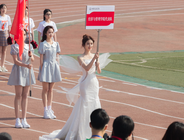 Cách đây không lâu, netizen Trung Quốc cũng truyền tay nhau loạt ảnh của một nữ sinh trong lễ khai mạc đại hội thể thao của Đại học Giao thông Sơn Đông (tỉnh Sơn Đông, Trung Quốc). Chỉ vừa xuất hiện trên sân, nữ sinh này đã khiến nam sinh toàn trường phải xuýt xoa không thôi. Về phần mình, netizen cũng gật gù một điều rằng khoa Quản lý và Kinh tế mà nữ sinh đại diện này chưa thi đấu đã thắng ít nhất một hạng mục, đó là có hot girl xinh nhất nhì trường rồi.