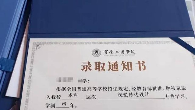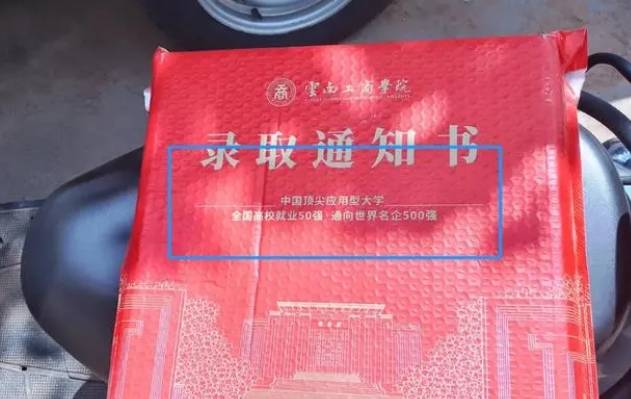 Nếu như giấy báo trúng tuyển của phần đông mọi người chỉ là một chiếc phong bì, bên trong là vài tờ giấy mỏng thì nữ sinh này lại nhận được nguyên chiếc phong bì to dày dặn được thiết kế rất đẹp mắt từ trường. Bên cạnh đó, mặt trên chiếc phong bì còn in to một dòng giới thiệu về trường. Đó là Học viện Kinh doanh và Công nghệ Vân Nam - trường đại học ứng dụng hàng đầu quốc gia, là cầu nối đến 500 tập đoàn nổi tiếng toàn cầu.
