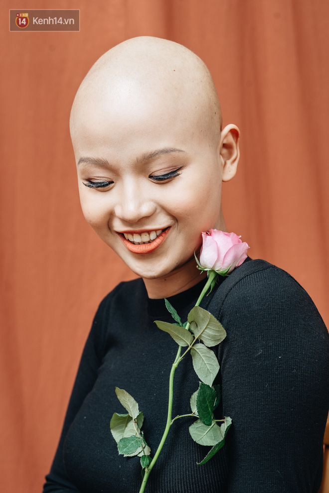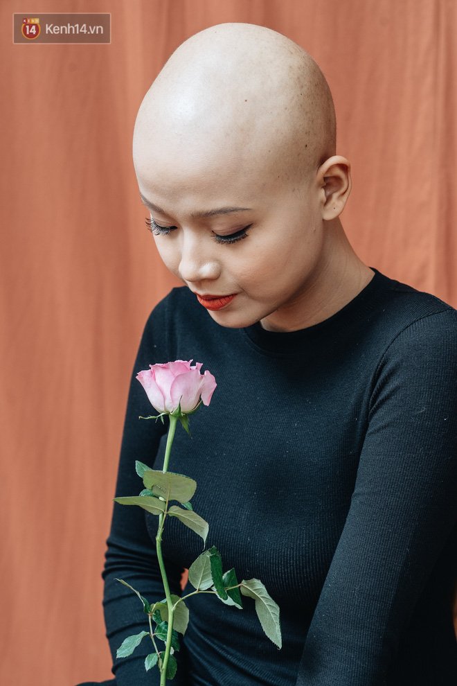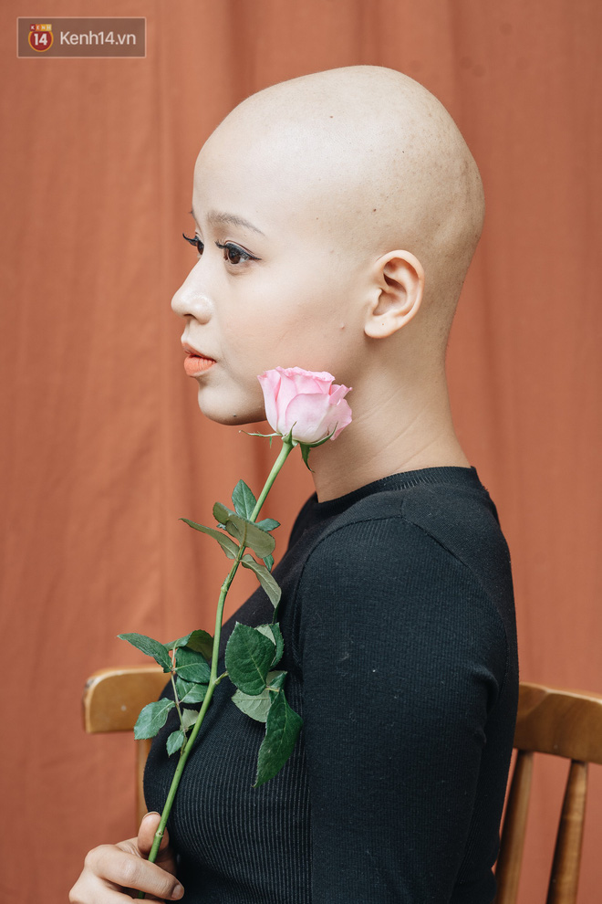 "Cắt tóc thật tiếc, nhưng em hiểu rõ phản ứng phụ của truyền hoá chất sớm muộn cũng khiến mái tóc rơi rụng từng ngày. Em hy vọng mái đầu trọc lóc này là lời nhắc nhở bản thân, rằng mình đang chiến đấu từng ngày, từng phút với tử thần để tiếp tục được sống".