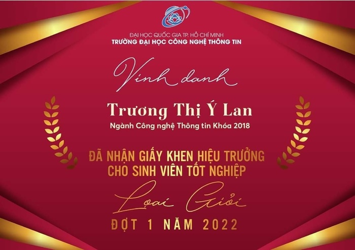 Khó khăn là thế nhưng Ý Lan vẫn luôn cố gắng hết mình, vươn lên bằng nghị lực phi thường để đạt thành tích GPA 8,9/10 đầy ấn tượng. Cô bạn tốt nghiệp đúng tiến độ ngành Công nghệ Thông tin với loại Giỏi. Đây cũng chính là thành quả bởi những nỗ lực bền bỉ của Ý Lan và sự bươn chải đồng hành của mẹ, sự quan tâm yêu thương của những người bạn tại UIT.