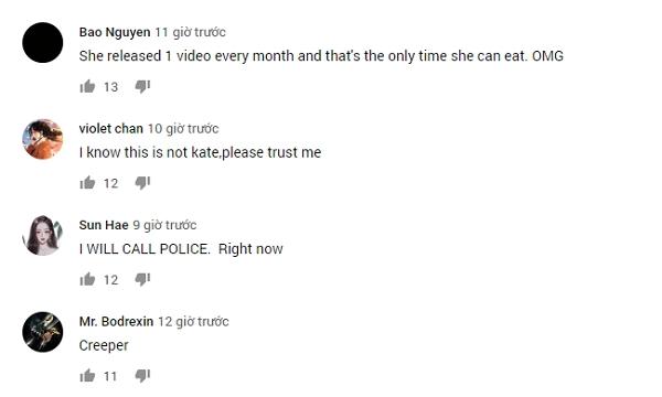 Ngay sau bài phân trần của cô về tình trạng của mình, nhiều người lại ngờ vực bài đăng này không phải là Kate. Nhiều người còn yêu cầu cô phải quay clip hoặc livestream lại để chứng minh mình vẫn ổn.