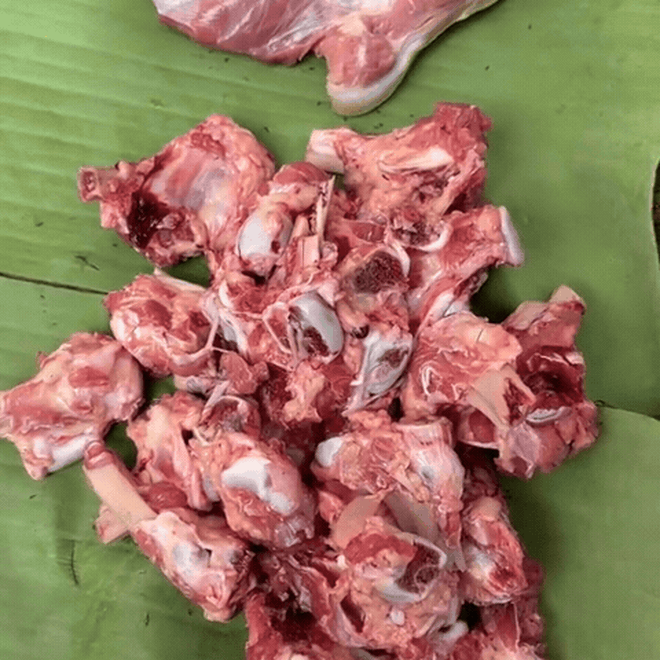 Chị Hoài chia sẻ xương bò ở quê rất rẻ, thậm chí chẳng có người mua. Với 30k tiền xương bò, chị chia làm 2 bữa để nấu ăn sáng cho cả nhà.