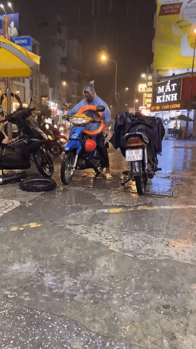 "Chuyện là xe mình bị bể lốp, lúc đầu đi sửa thì chưa mưa đâu, mình đi rút tiền thì mưa. Xong mình tới cũng nghĩ ‘Ờ chắc người ta không nhận do mưa thế này thì ai sửa’. Nhưng KHÔNG, chú đội mưa đi mua lốp xe ngồi sửa xe trong mưa luôn cả nhà ơi.