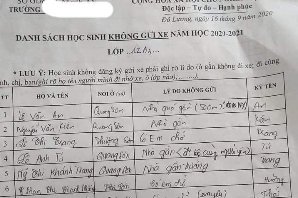Trường yêu cầu ghi lý do không gửi xe và câu trả lời 'lầy lội' của các học sinh