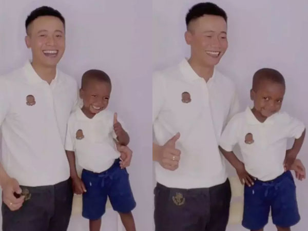 Biểu cảm diễn sâu của cậu bé khi chụp hình cùng Quang Linh khiến người xem vô cùng thích thú.
