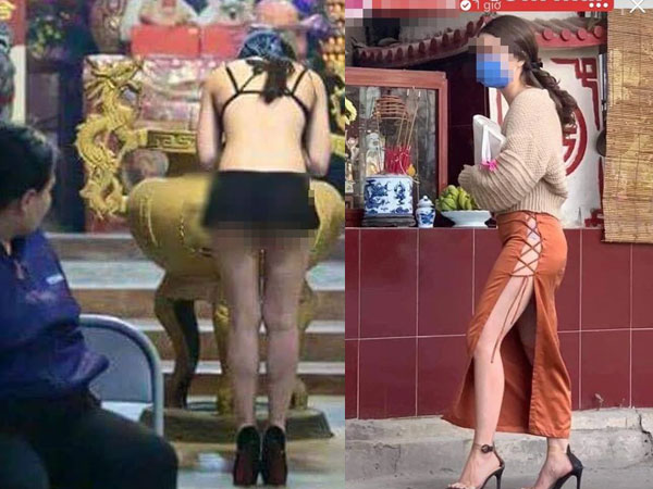 Đi lễ chùa đầu năm, nhiều cô gái trẻ không chú ý đến trang phục, vô tư mặc váy ngắn, váy xẻ tà, quần áo mỏng tang... khiến nhiều người phải ái ngại.