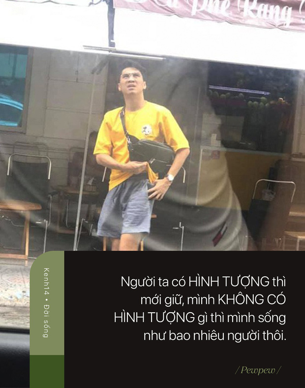 Gặp Pew sau 7 tháng nói lời chia tay khán giả của mình. Pew khác trước nhiều, không phải là chuyện cân nặng hay thần thái mà là ở trang phục. Hồi còn là KOLs thuộc một công ty, gây sốt với câu nói “Anh không ngại việc ra Hà Nội, anh chỉ cần 1 lý do thôi", Pew mặc quần tây áo sơ mi đi gặp mặt. Còn bây giờ, Pew “chơi" nguyên cây quần đùi hoa hoạ tiết, áo thun, dép lê. Bề ngoài là thế nhưng ngay khi cất giọng, Pew vẫn là Pew.