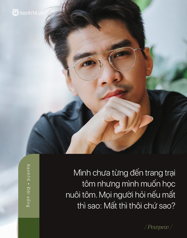 Mình muốn 28, 30 tuổi vẫn có thể làm 1 điều gì đó mới mẻ. Mình chưa từng đến trang trại tôm nhưng mình muốn học nuôi tôm. Mọi người hỏi nếu mất thì sao: Mất thì thôi chứ sao? Và mình đang tìm hiểu nuôi tôm thật. Cách đây 1 năm khi mình mở tiệm bánh mì thứ nhất, có người hỏi mình sau cái này anh muốn làm cái gì? Mình nói nếu thành công mình sẽ đi nuôi heo nuôi gà. Mình không nói đùa.