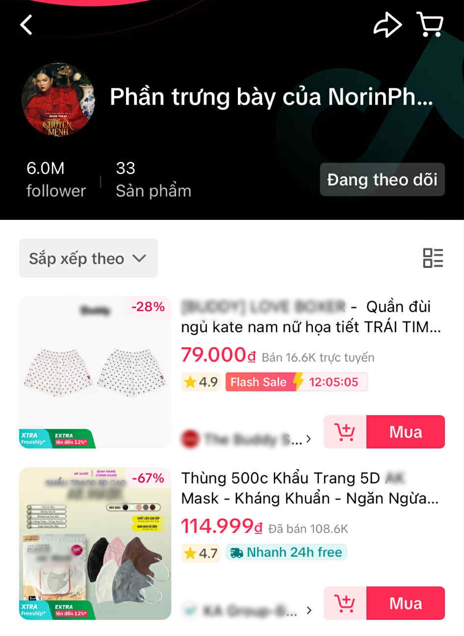 Một hoạt động khác vẫn đang đem lại thu nhập cho Phạm Thoại là affiliate, gắn giỏ hàng trên kênh TikTok 6 triệu người theo dõi. Cụ thể, nếu người tiêu dùng mua hàng từ giỏ hàng này thì Thoại sẽ nhận được hoa hồng.