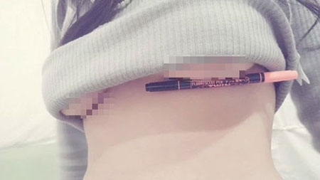 Trào lưu lấy ngực kẹp bút bi chứng minh bản thân có vòng 1 chuẩn đang gây sốt khắp mạng xã hội Trung Quốc, tuy nhiên hình ảnh này lại khiến nhiều người thấy phản cảm.