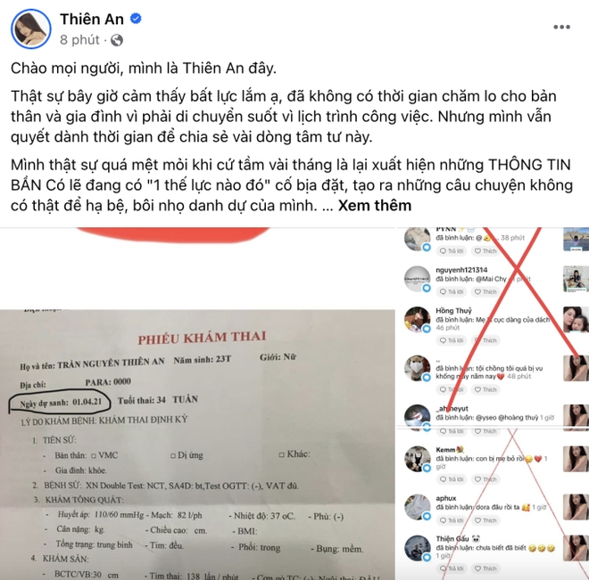Do đó, Thiên An mong rằng cộng đồng mạng ngừng đăng tải những thông tin không có thật để tránh làm xáo trộn cuộc sống của những người không liên quan. “Mình thật sự ĐÃ và ĐANG có cuộc sống mới rất tốt. Rất nhiều lần mình cầu xin đừng làm phiền đến mình nữa, mình đã quá mệt mỏi rồi, mình đang nỗ lực đi làm nuôi con, mình không phiền đến ai và cũng không có nhu cầu được ai nhắc tên.