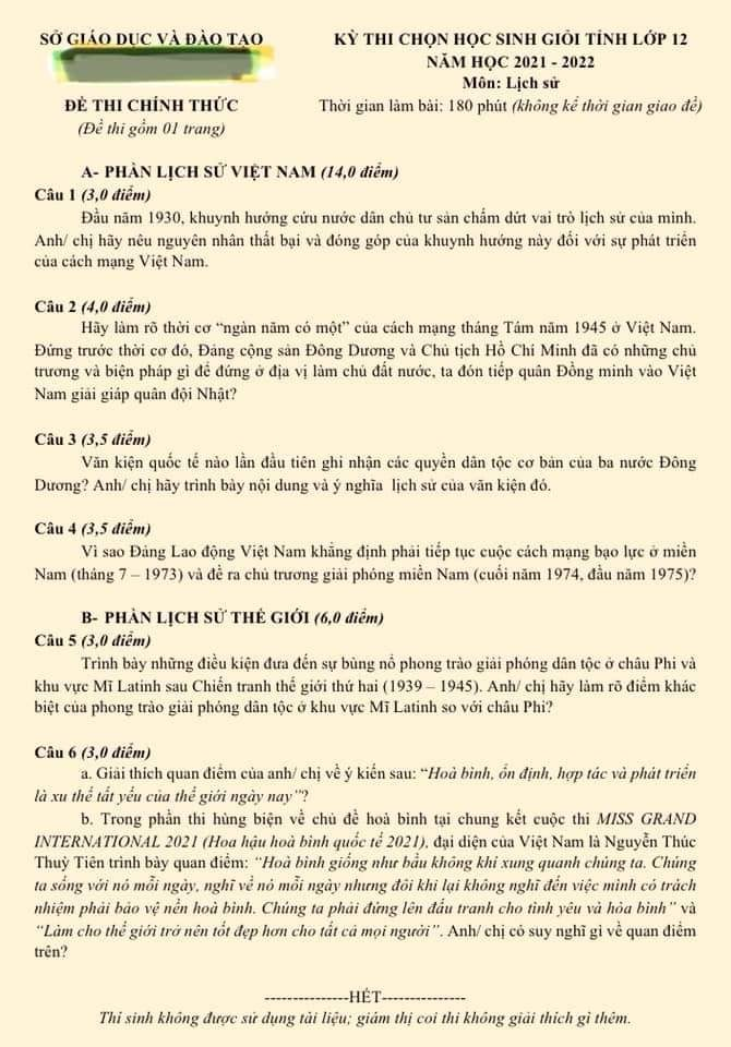 Mới đây, nội dung này đã được đưa vào đề thi học sinh giỏi môn Lịch sử để làm khó các em học sinh. Để hiểu hết thông điệp này, chắc chắn các bạn học sinh đang ngồi trên ghế nhà trường phải có lượng kiến thức phong phú.