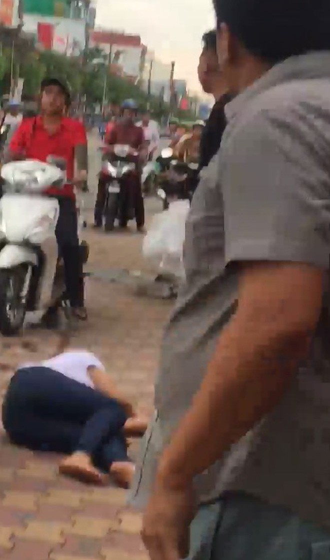 Cuối đoạn clip, nam thanh niên tức tối lên xe máy bỏ đi 1 mình, cô gái trẻ do quá đau đớn nên nằm bất động dưới đất, nhiều người dân lo lắng nói nhau gọi cấp cứu.