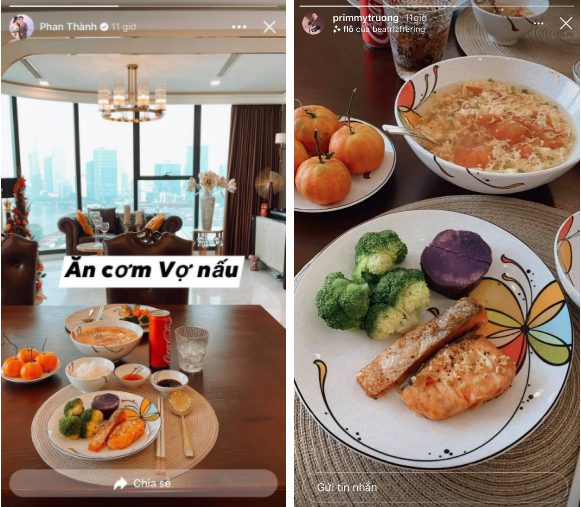 Primmy cũng quá chu đáo khi chăm lo cho chồng đầy đủ dù việc nấu món mặn vào ngày chay là chuyện cô hoàn toàn có thể cho qua và chắc chắn Phan Thành cũng không trách cứ gì. Thiếu gia họ Phan cũng không khiến vợ mình thất vọng khi ngay sau đó là những bức ảnh đi kèm để thiên hạ chiêm ngưỡng sự chu đáo của Primmy dành cho chồng.