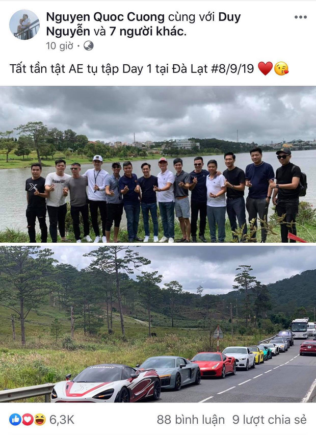 Về phần Cường Đô La, dân tình liền đặt câu hỏi về sự vắng mặt của anh chàng. Hoá ra trong lúc đám cưới con gái Minh Nhựa diễn ra, vị đại gia đang bận tụ họp với anh em ở Đà Lạt. Có thể thấy hội bạn này của Cường Đô La cũng không hề kém cạnh trong khoản chơi siêu xe. Nhìn dàn xế khủng nối đuôi nhau mà ai nấy đều cảm thấy choáng ngợp kinh khủng khiếp.