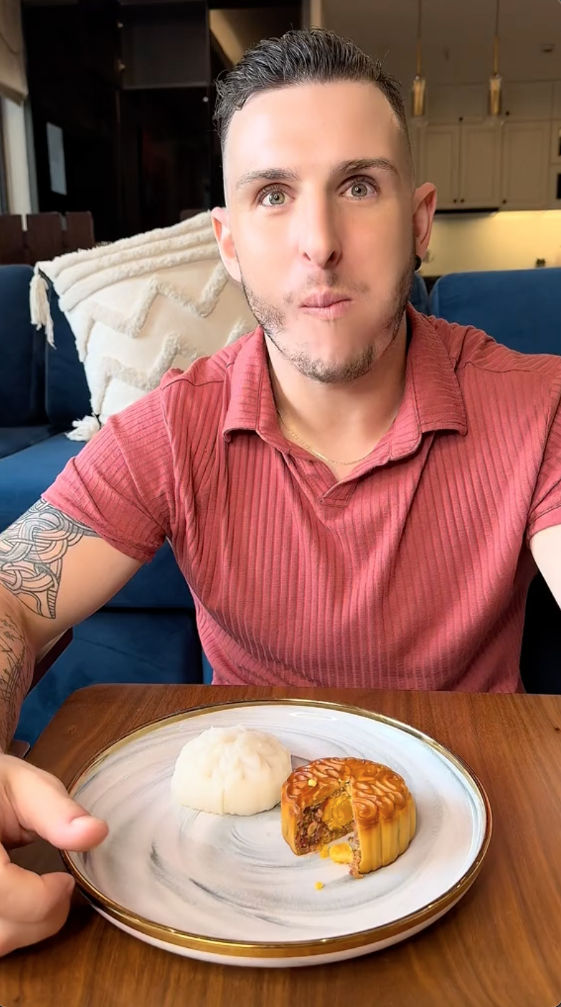 Cùng với đó, anh chàng này còn ăn thử cả bánh dẻo nhân sen nhuyễn. Đây cũng là một loại nhân bánh Trung thu khá phổ biến trong nhiều năm trở lại đây. Theo chia sẻ trong clip, dù đã ở Việt Nam qua 6 mùa Trung thu nhưng đây là lần đầu tiên anh Tây này ăn thử bánh dẻo. Anh cũng hết lời khen ngợi hương vị bánh dẻo, thậm chí còn cho biết thích bánh dẻo hơn so với bánh nướng dù bánh nướng cũng rất ngon.