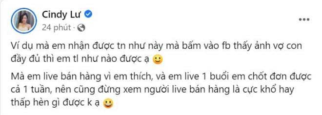 Trước những tin nhắn của người đàn ông này, Bảo Ngọc chia sẻ: "Ví dụ mà em nhận được tin nhắn như này mà bấm vào facebook thấy anh vợ con đầy đủ thì em trả lời như nào được ạ. Mà em live bán hàng vì em thích, và em live 1 buổi em chốt đơn được cả 1 tuần, nên cũng đừng xem người live bán hàng là cực khổ hay thấp hèn gì được không ạ".