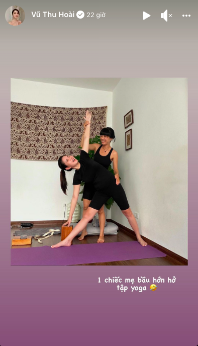 Trong thời gian mang bầu, giống với Phanh Lee, Thu Hoài vẫn giữ được vóc dáng gọn gàng. Cô không tăng cân quá nhiều, chỉ có bụng bầu đã to thấy rõ và khuôn mặt tròn trịa hơn. Để giữ vóc dáng khỏe đẹp, ngoài chơi golf, Thu Hoài học thêm yoga cho bà bầu.