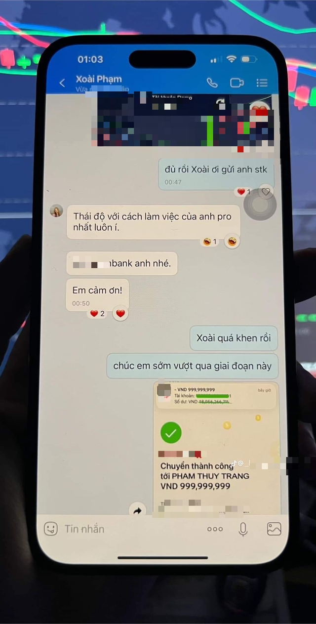 Theo đó, người này mở đầu với màn "giật tít": "Động thái đầu tiên của Xoài Non hậu ly hôn". Sau đó là loạt tin nhắn "nhạy cảm" có nội dung liên quan đến tài chính giữa hai người với nhau. Theo như hình ảnh, cô gái có tên là Xoài Phạm (được hiểu sử dụng tên Xoài Non kết hợp họ thật). Người dùng này còn sử dụng hình ảnh Xoài Non làm ảnh đại diện nếu nhìn qua dễ gây hiểu lầm.