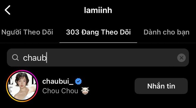 Không dừng lại ở đó, netizen còn nhận ra Châu Bùi và Lâm Minh có theo dõi nhau trên Instagram, cho thấy có kết nối nhất định. Song cả 2 gần như không tương tác, ngoài việc Châu Bùi thả tim nói trên.