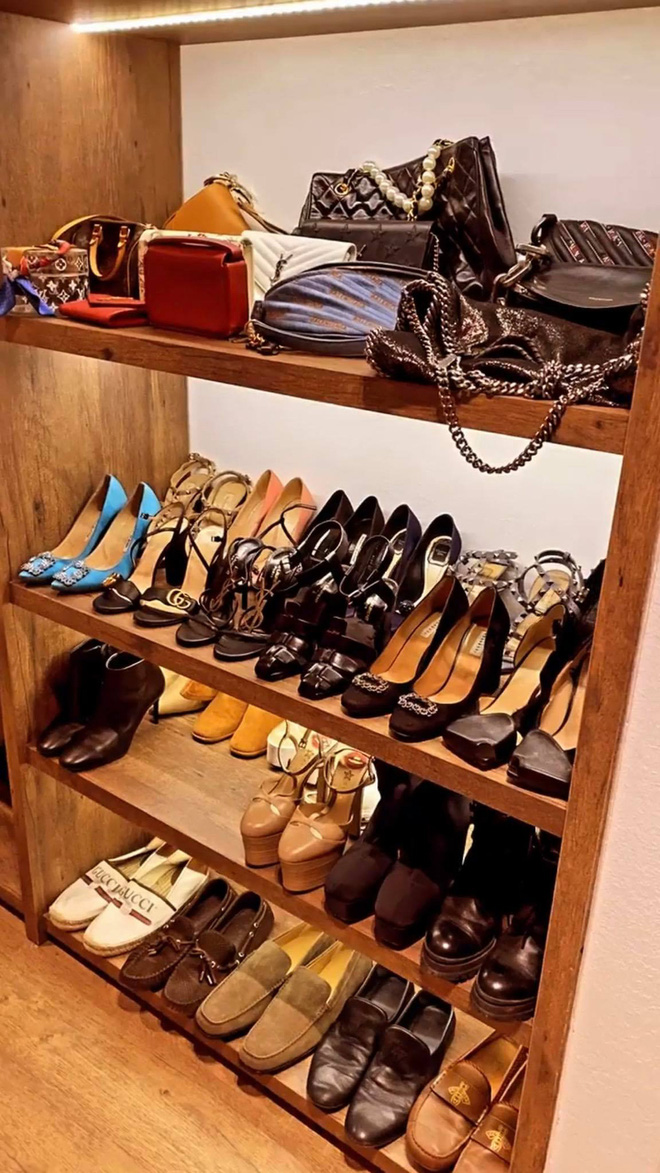 Một lần khác, góc phòng thử đồ với cơ man nào là giày cũng được ké sóng trong bức ảnh khoe chồng ngồi đếm cọc tiền to đùng của Đoàn Di Băng.