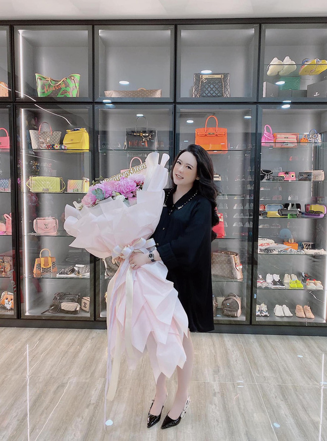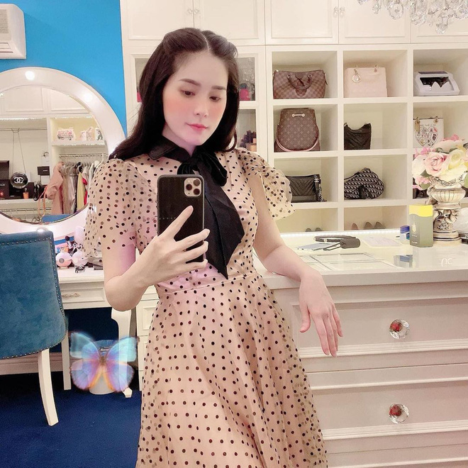 Phòng thay đồ của nữ đại gia quận 7 thường xuyên xuất hiện chút chút trong những tấm hình cuộc sống thường ngày, rõ nét nhất phải kể đến những lần lấp ló phía sau loạt ảnh sống ảo của cả hai vợ chồng cô với vai trò background tiền tỷ.