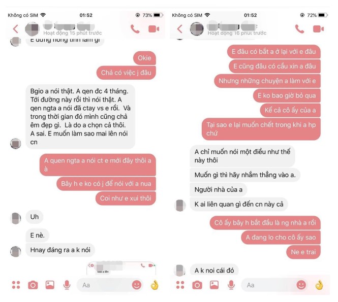 Ngay sau khi vừa được đăng tải, câu chuyện đã nhanh chóng thu được sự chú ý cũng như bàn tán sôi nổi của cộng đồng mạng. Và ngoài những bức ảnh như trên, nữ nhân vật chính còn đăng đàn kèm theo loạt ảnh chụp màn hình tin nhắn giữa cô và chàng bạn trai bội bạc. Dễ thấy trong đó, chàng ta khi bị phát hiện đã vội phũ phàng mặc cho cô nàng có vẻ như muốn níu kéo, muốn nói chuyện thẳng thắn với nhau một lần.
