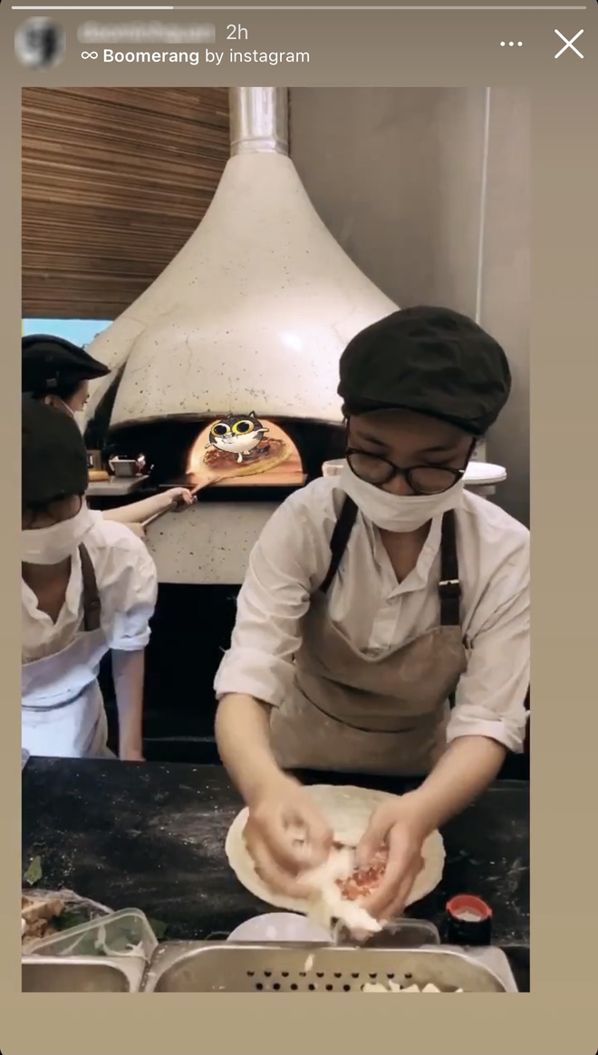Lần này, cả hai chọn đi ăn pizza nướng củi. Vẫn chiêu cũ là không chụp ảnh cùng nhau, thế nhưng nhìn khung cảnh, nhìn nhân viên, nhìn món ăn rồi nhìn cả thời gian đăng story, muốn dân mạng tin người đẹp họ Phí đang không ở cạnh M.Q. chắc còn khó hơn lên trời.