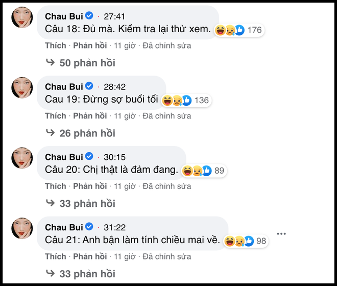 Tuy nhiên phía dưới bài đăng trên page Chau Bui, netizen lại tiếp tục tranh cãi thêm một vấn đề mới rằng tại sao không phải Châu Bùi xin lỗi mà là admin fanpage. Nhiều người cho rằng chính cô nàng nên đứng ra xin lỗi: