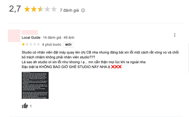 Hiện tại, người đặt camera quay lén đã bị phía Châu Bùi đưa ra cơ quan chức năng để điều tra thêm về hành vi nghiêm trọng này. Song mới đây, phía studio W. - nơi Châu Bùi bị đặt máy quay lén đã có một bài đăng xin lỗi và giải thích rõ hơn về sự việc. Tuy nhiên, nội dung của bài đăng lại khiến cộng đồng mạng bất bình hơn, liên tục thả “phẫn nộ” vì cho rằng studio W. đang lấp liếm, có ý chối bỏ trách nhiệm. Thậm chí, netizen còn tràn sang Google để đánh giá 1 sao cho địa điểm này.