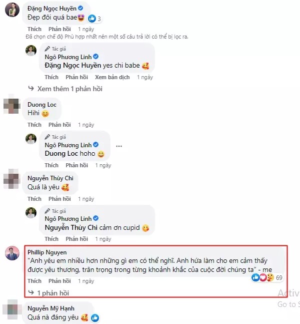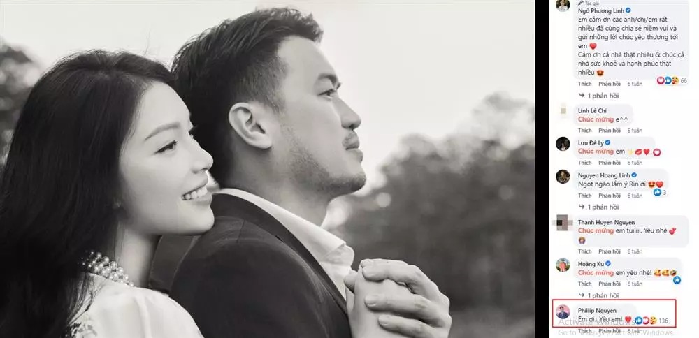 Gây chú ý hơn cả là màn phát "cẩu lương" của Phillip Nguyễn ngay dưới bài viết của vợ sắp cưới.