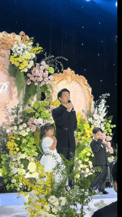 Theo clip được chia sẻ, trước khi gửi tặng món quà tình cảm là bài Hơn Cả Yêu (Đức Phúc), Quang Vinh có đôi lời giới thiệu với mọi người. “Lời đầu con xin tự giới thiệu con là Quang Vinh, vừa là em họ của chị Mai Phương, vừa là người bạn thân, vừa là người anh vì con cũng nhiều tuổi hơn Phương một chút. Thực sự ngày hôm nay con cũng rất may mắn và vinh dự được đóng góp một phần tạo nên sự hạnh phúc trong bữa tiệc hôm nay” - em họ cô dâu nói.