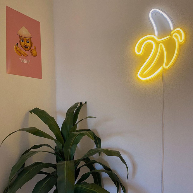 Căn phòng của Jenny Huỳnh được trang trí bởi những tấm poster, tranh ảnh màu mè, gấu bông và những chiếc đèn neon hình quả chuối - đam mê khó bỏ của cô nàng trông rất cute.