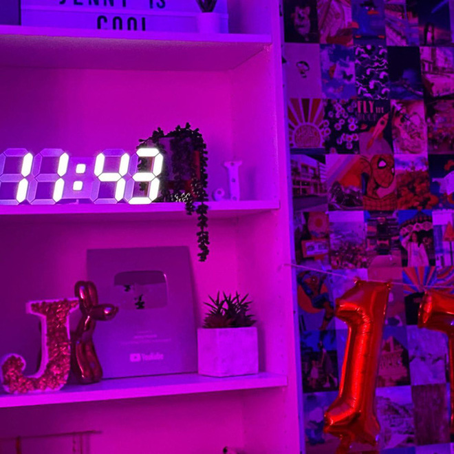 Nhờ hiệu ứng của đèn neon, chiếc kệ trang trí của cô nàng vào ban đêm như lột xác hẳn, trông vô cùng chill luôn đó.