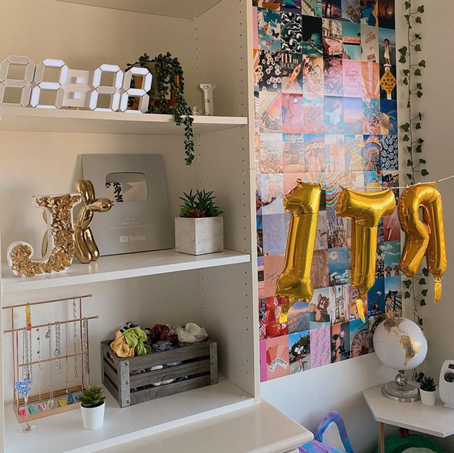 Nếu phòng của các rich kid "anh chị" ưa chuộng sự tinh tế và sang chảnh trong từng ngóc ngách thì hội con nhà giàu Gen Z lại như một bức tranh với những mảng màu khác biệt. Điển hình trong đó có thể kể đến căn phòng xinh xắn của Jenny Huỳnh tại Mỹ.