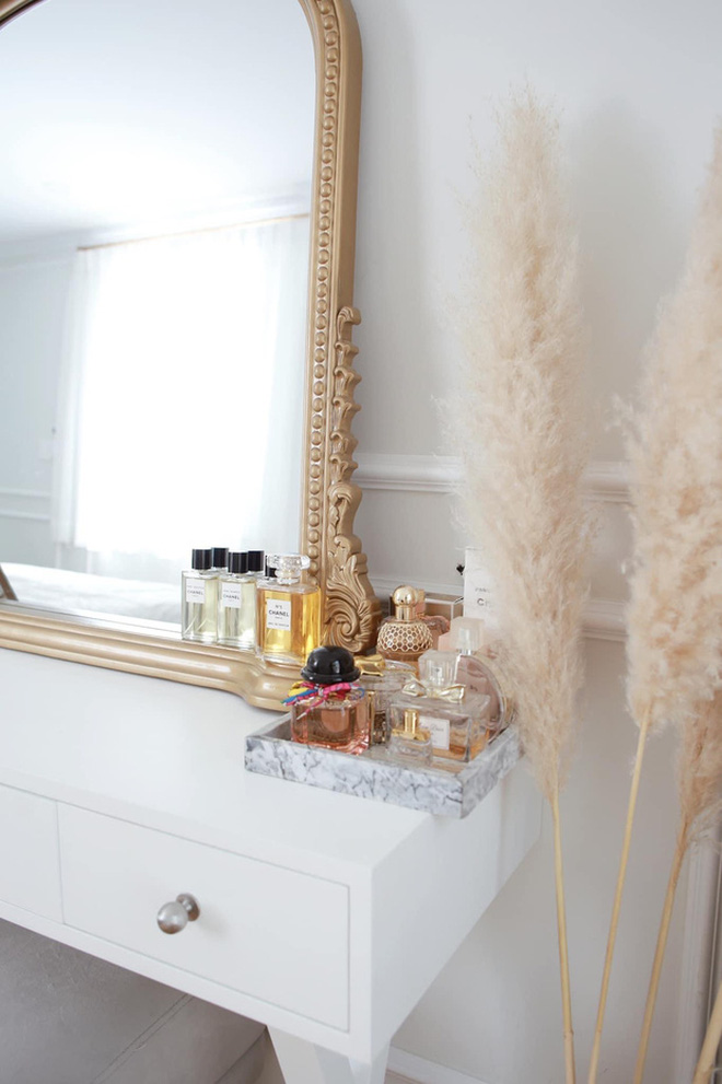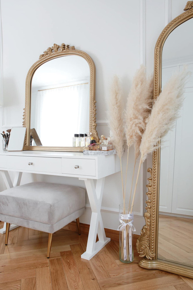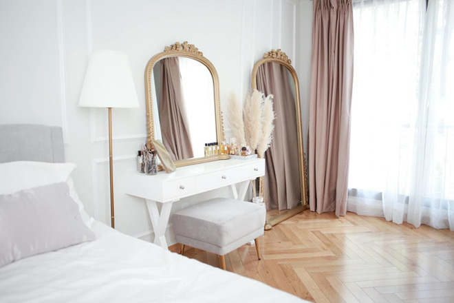 Điểm đặc biệt nhất trong phòng ngủ của Thảo Nhi Lê chính là 2 tấm gương được thiết kế theo phong cách vintage được bài trí sát bên cạnh nhau. Nếu tấm gương lớn được dùng để ngắm vuốt sau khi lên đồ thì tấm gương nhỏ được đặt trên bàn trang điểm cạnh bên mỹ phẩm, nước hoa của cô nàng.