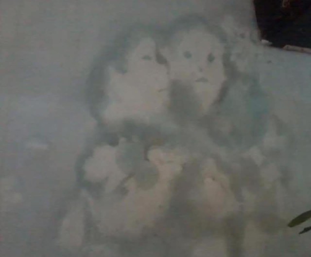 Bởi hình ảnh do vết thấm nước tạo thành đã khiến nhiều người liên tưởng đến hình ảnh hai người đang ôm nhau đầy tình cảm. Trong bức hình cho thấy một người có đầu đủ mắt, mụi miệng, và người còn lại thì đang nghiêng mặt tựa đầu rất tình cảm.