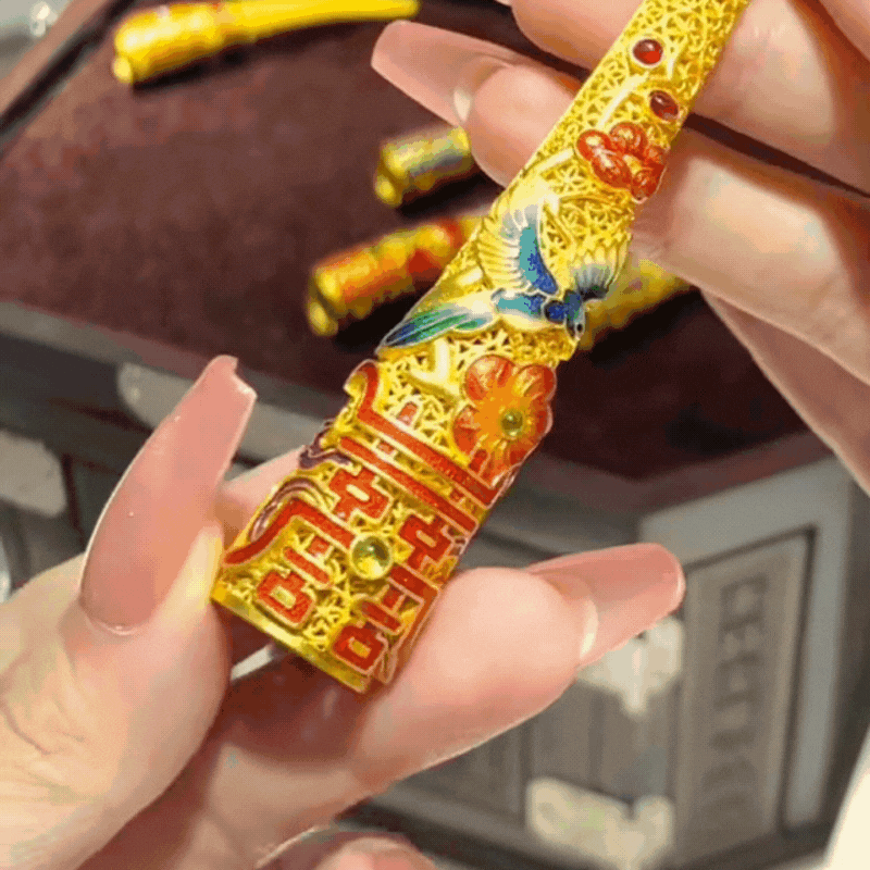 Những món đồ bằng vàng Hạ A Đào chuẩn bị cho con gái thường là những biểu tượng mang ý nghĩa may mắn như lẵng vàng, gậy như ý đại cát đại lợi, vương miện vàng,... Không chỉ vậy, A Đào cũng rất thích những món đồ khác như túi xách bằng vàng, thậm chí cả hộ giáp (móng tay giả) thường xuất hiện trong các bộ phim cổ trang Trung Quốc - thứ mà phi tần, hoàng hậu thường đeo không rời.